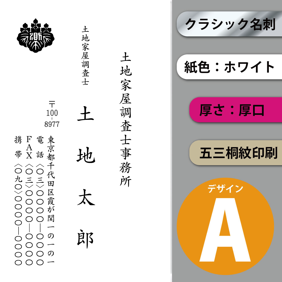 クラシック名刺 ホワイト 厚口 縦 デザインA