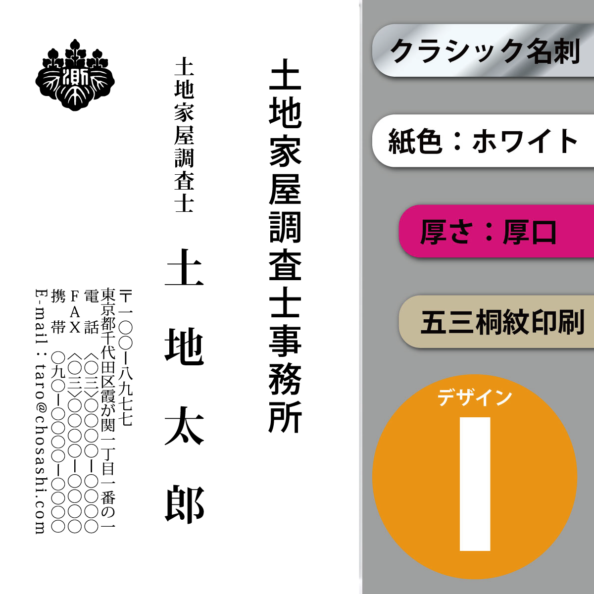 クラシック名刺 ホワイト 厚口 縦 デザインI